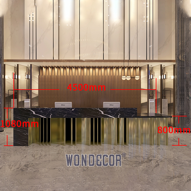 | Nama Produk | Desain Kantor Logam Stainless Steel Meja Meja Resepsionis Hotel Komersial Stainless Steel Meja | Pabrikan | WONDECOR |