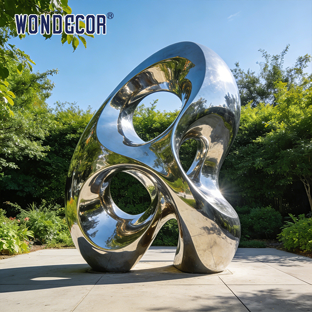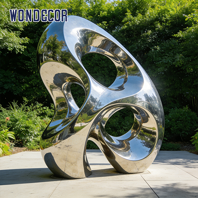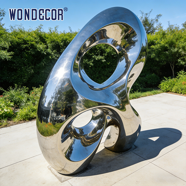 Patung stainless steel berskala besar "Circular Ripple" ini mewujudkan semangat patung logam abstrak Barat kontemporer—berakar pada tradisi abstraksi organik Brancusi dan monumentalitas bentuk berongga Henry Moore, yang dibayangkan ulang untuk ruang publik abad ke-21. Ditempa dari stainless steel 304/316 yang dipoles cermin, permukaannya yang dipoles cermin bertindak sebagai kanvas hidup, menangkap langit, cakrawala kota, dan lanskap sekitarnya dalam dialog konstan cahaya dan pantulan, menggemakan energi kinetik para master minimalis seperti Richard Serra. Rongga melingkar yang saling terkait menciptakan rasa ruang negatif yang mengundang pemirsa untuk melihat menembusnya, membangkitkan keterbukaan meditatif sambil menegaskan kehadiran geometris yang berani. Direkayasa untuk daya tahan, patung ini menawarkan ketahanan korosi yang luar biasa, stabilitas UV, dan ketahanan cuaca, memastikan kilauannya yang bercahaya bertahan selama beberapa dekade di lingkungan luar ruangan dengan perawatan minimal. Lebih dari sekadar objek dekoratif, ini adalah karya seni publik yang spesifik lokasi yang mengeksplorasi tema keterhubungan, fluiditas, dan harmoni antara struktur buatan manusia dan dunia alami, menjadikannya pernyataan definitif untuk taman kota, alun-alun tepi laut, dan koleksi institusional.